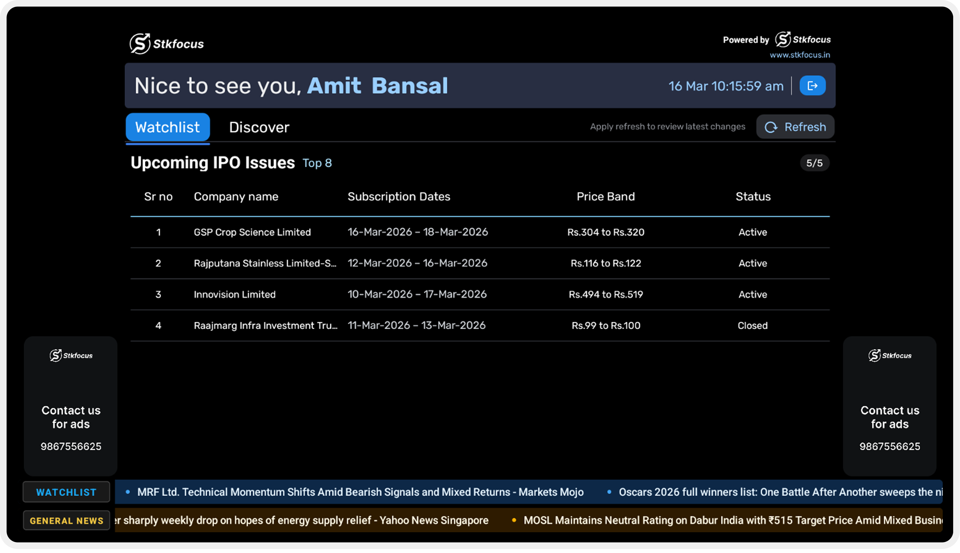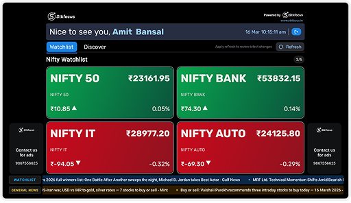 Update and manage stock, Nifty, IPO, 52-week high, and 52-week low watchlists from any device.