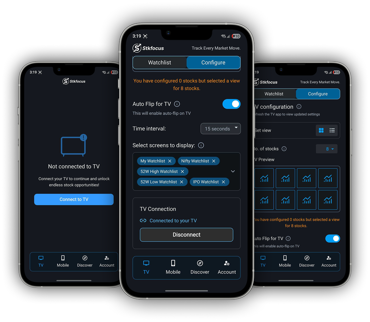 • Sync your watchlist including Nifty, IPO and 52 Week High Low, adjust display options, and hit refresh on your TV to apply changes instantly.